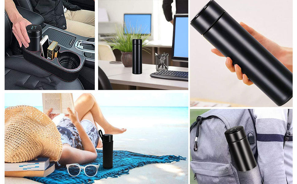 Stay hydrated in style with this personalized smart bottle, featuring an LED temperature display for real-time drink tracking.